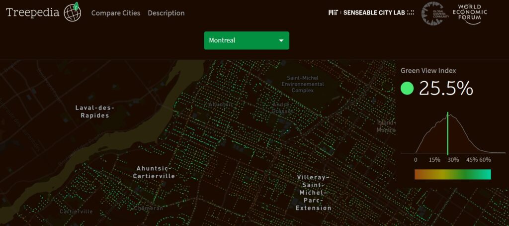 Une carte interactive du gouvernement du Québec démontre clairement ces îlots de chaleur. Tout comme le Green View Index du site Web Treepedia, développé par le Massachusetts Institute of Technology et le Forum économique mondial.