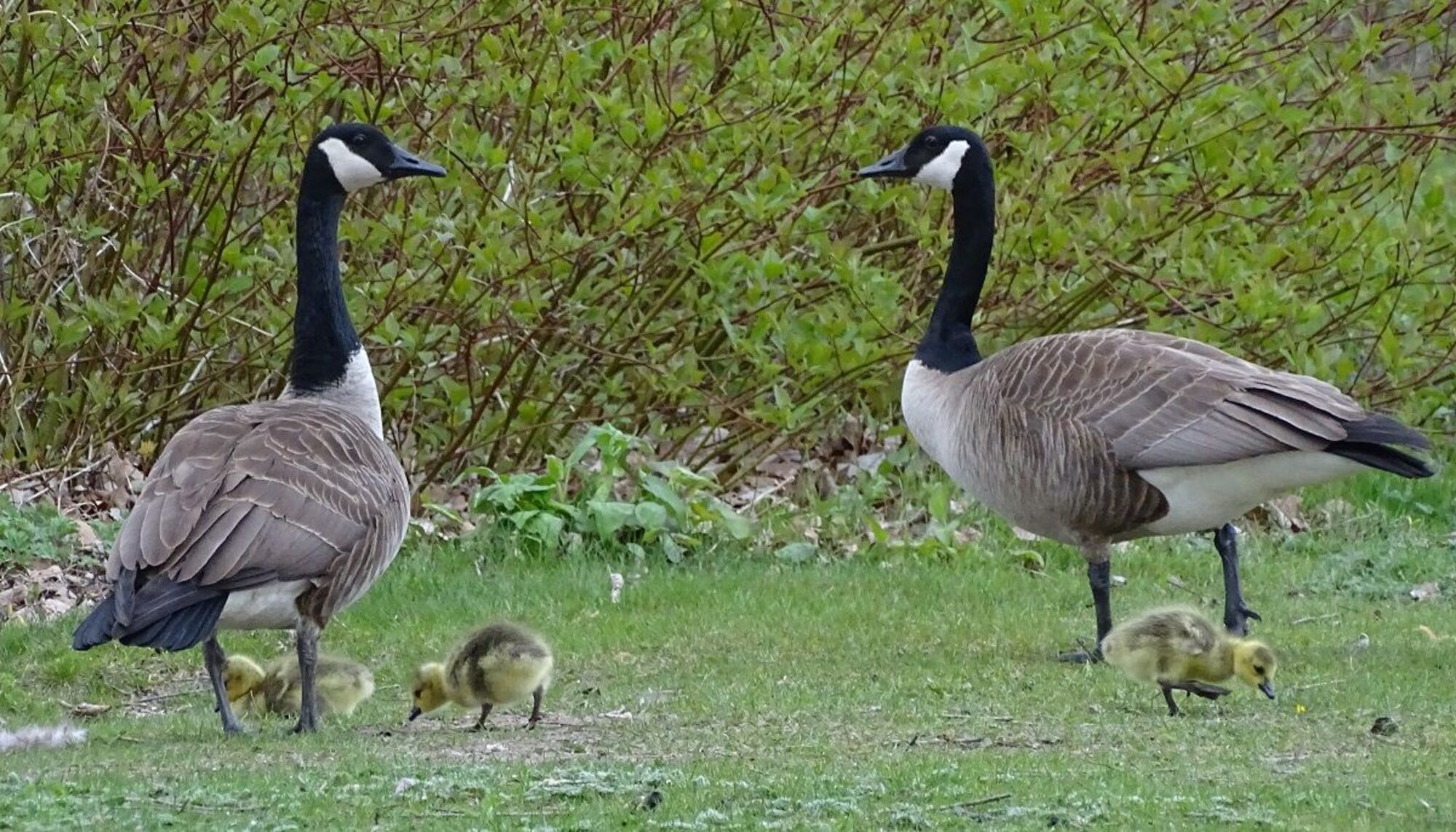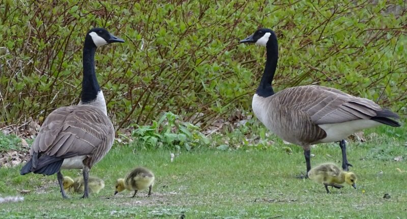 Couple de Bernaches et leurs petits au parc De la Merci(Photo : Philippe Rachiele, JDV)