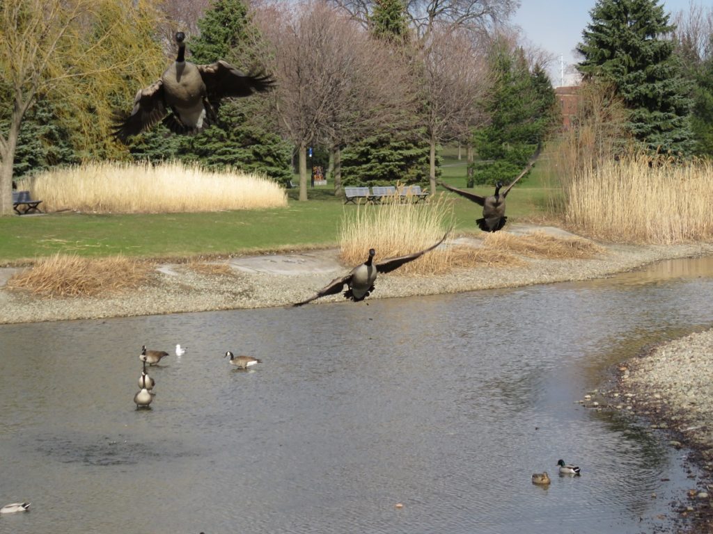 Bernaches en vol au parc Ahuntsic (Photo : jdv – Philippe Rachiele)
