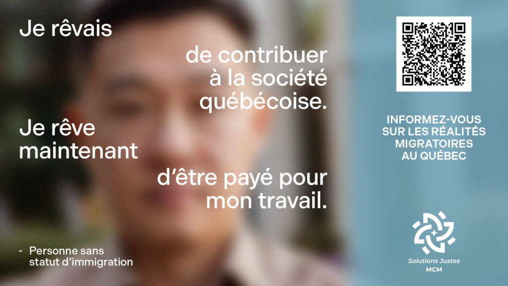 La MCM et la clinique juridique Solutions Justes lance une campagne de sensibilisation et d’éducation aux difficultés rencontrées par les personnes migrantes sans statut d’immigration et à statut précaire.