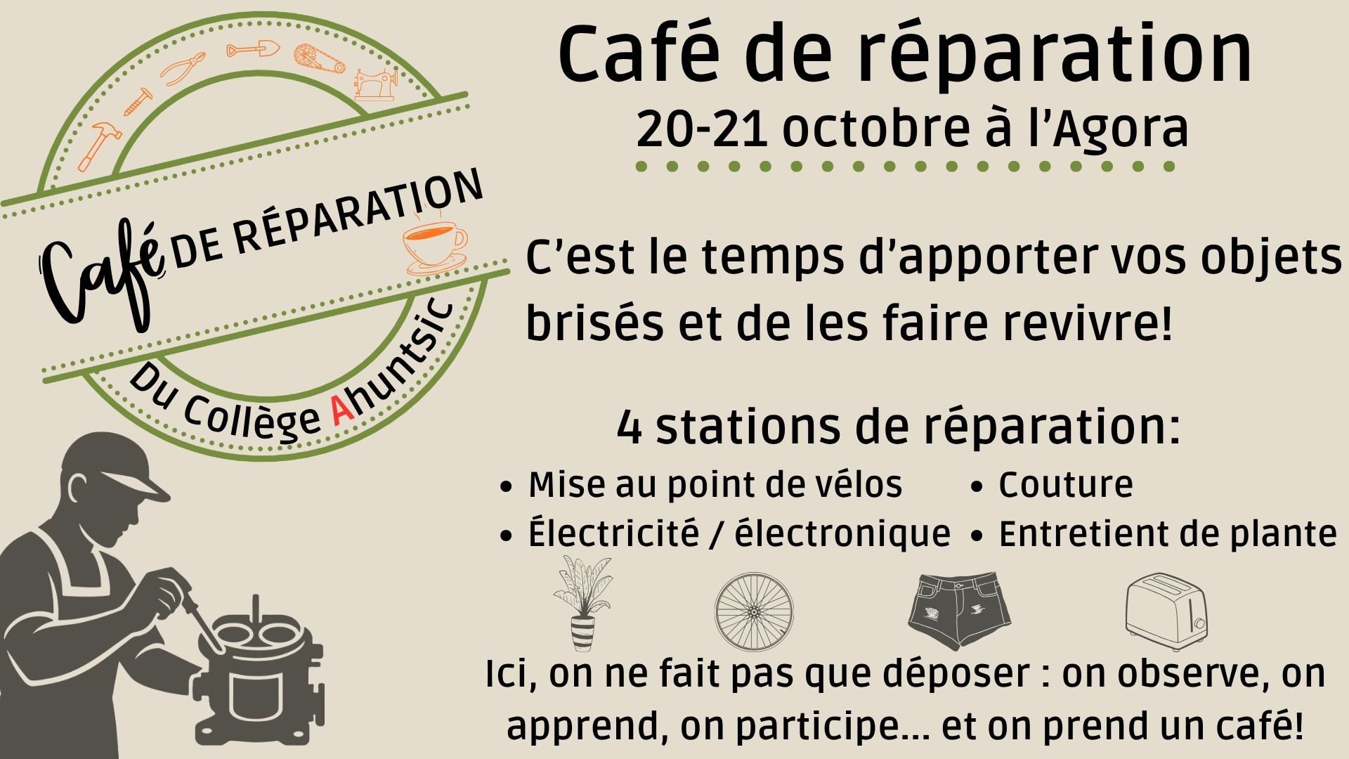 L’Espace des possibles organise un Café de réparation à l’agora du Collège Ahuntsic, le 20 et 21 octobre.