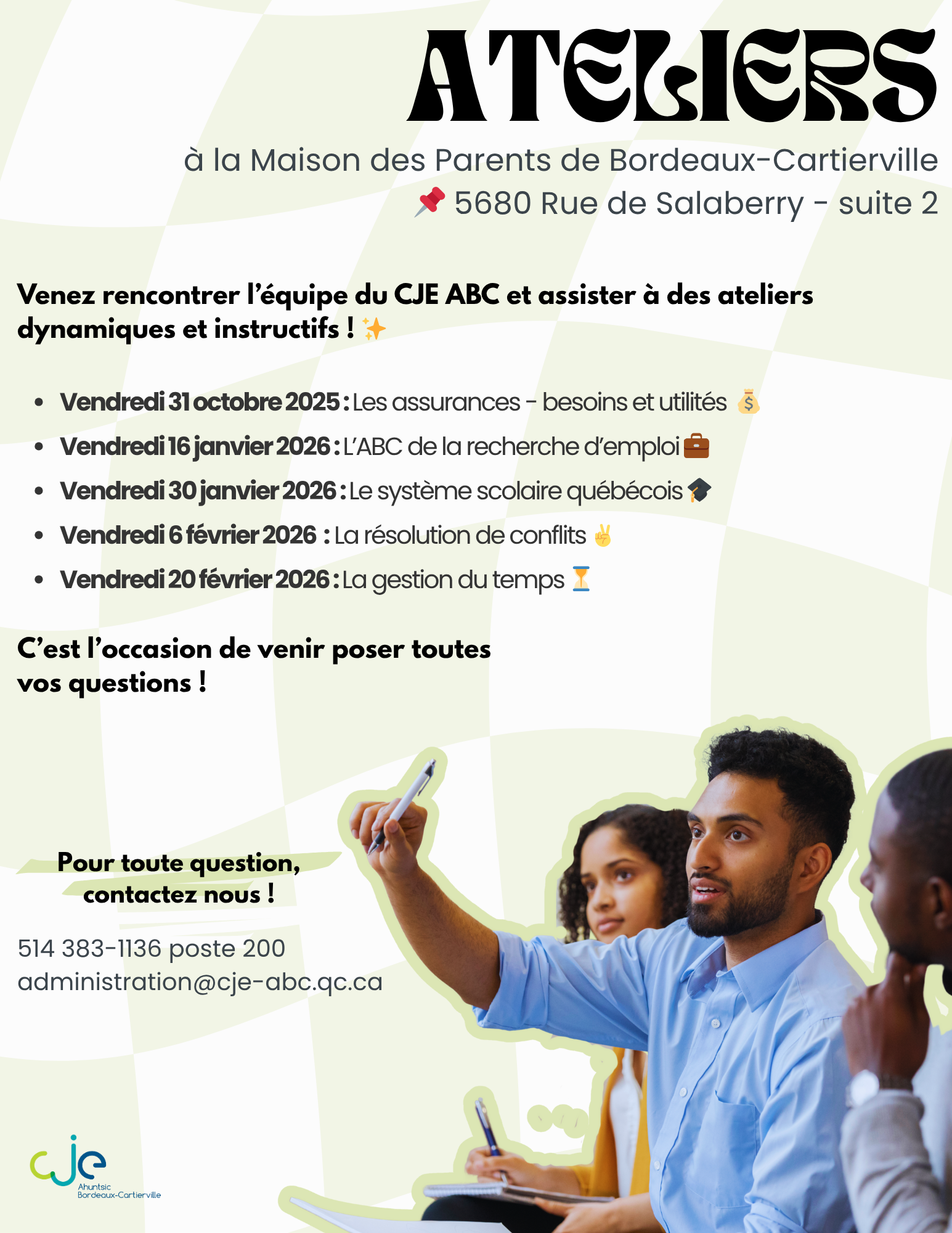 Le CJE ABC a également une panoplie d’ateliers tout au long de l’hiver 2026.