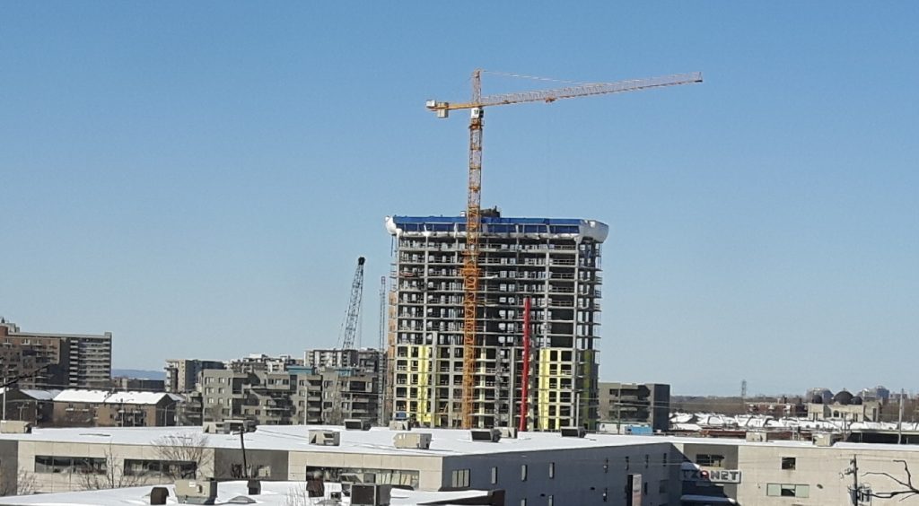 Les travaux avancent pour le projet Voltige sur la rue Sauvé près du boulevard de l’Acadie.  Pour lire notre texte précédent sur ce projet, cliquez ici. (Photo : Philippe Rachiele)