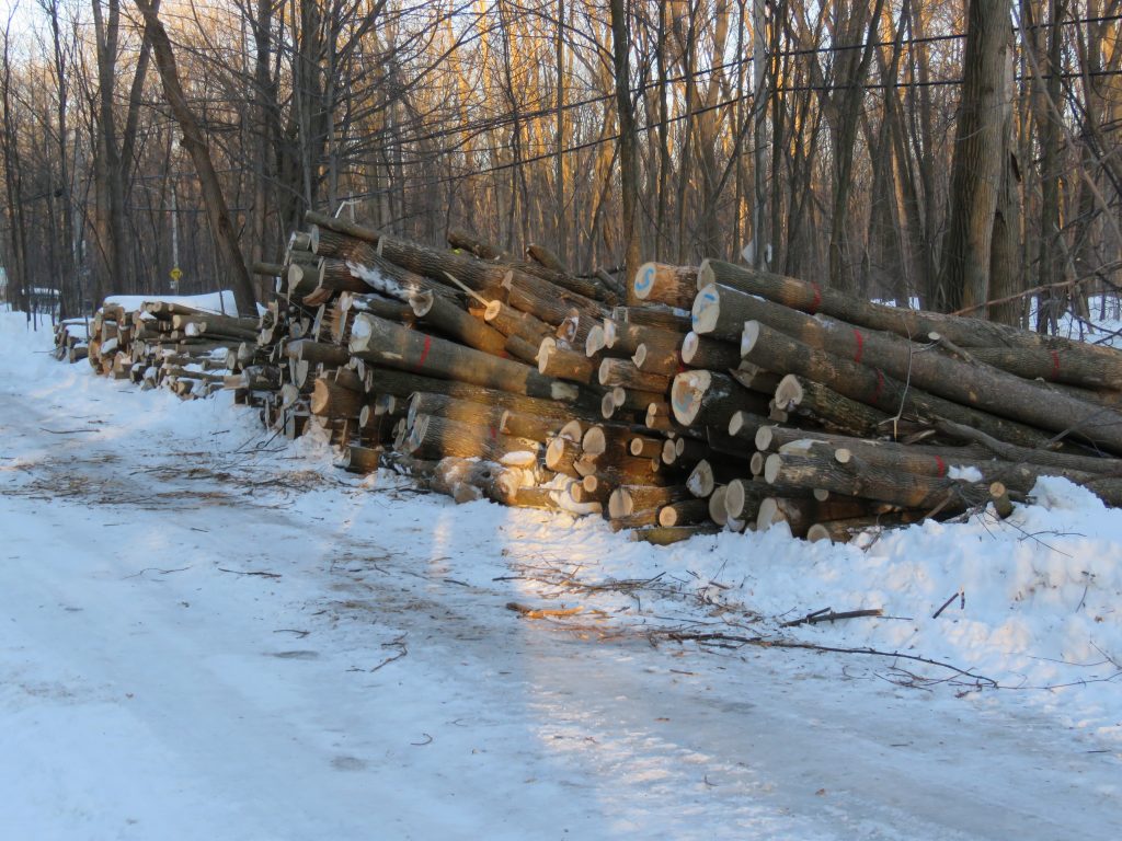 Les travaux d’abbatage des frênes du boisé de Saraguay est en marche (Photo : Philippe Rachiele)
