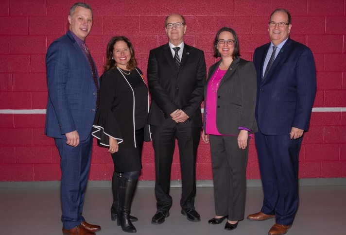 égende: M. Patrick Caron, directeur général du Collège André-Grasset, Mme Isabelle Foisy, présidente du conseil d’administration du Collège André-Grasset, M. Richard Campeau, député de Bourget, Mme Émilie Thuillier, mairesse de l’arrondissement d’Ahuntsic-Cartierville et M. Denis Berthiaume, président du cabinet de campagne majeure de la Fondation du Collège André-Grasset. (Crédit-photo: Collège André-Grasset)