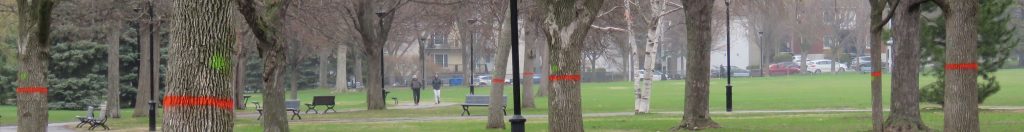 Alerté par un citoyen inquiet, archive.jdv.symbiodev.xyz a constaté que de nombreux arbres sont identifiés pour abattage au parc Ahuntsic. La grande majorité semblent être des Frênes qui auraient perdu leur bataille contre l’agrile, l’insecte ravageur qui les décime. Les points de couleur sur les arbres indiquent que le traitement avec le produit TreeAzin avait été administré à ces frênes pour ralentir et tenter d’arrêter la propagation de l’insecte. Notons que le parc Ahuntsic sera réaménagé dans les prochaines années. Pour lire notre dossier canopée de notre édition papier cliquez ici (P.R.)