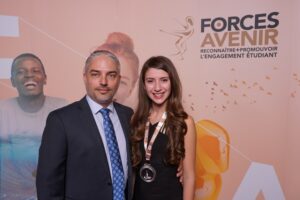 Au printemps dernier, Alicia Belaiche a été nommée lauréate régionale de Forces AVENIR en remportant une médaille d’argent dans la catégorie Élève engagé(e). En raison de cette distinction, elle a été conviée au Capitole de Québec pour la prestigieuse soirée de reconnaissance annuelle de Forces AVENIR au secondaire, animée par Stéphan Bureau.