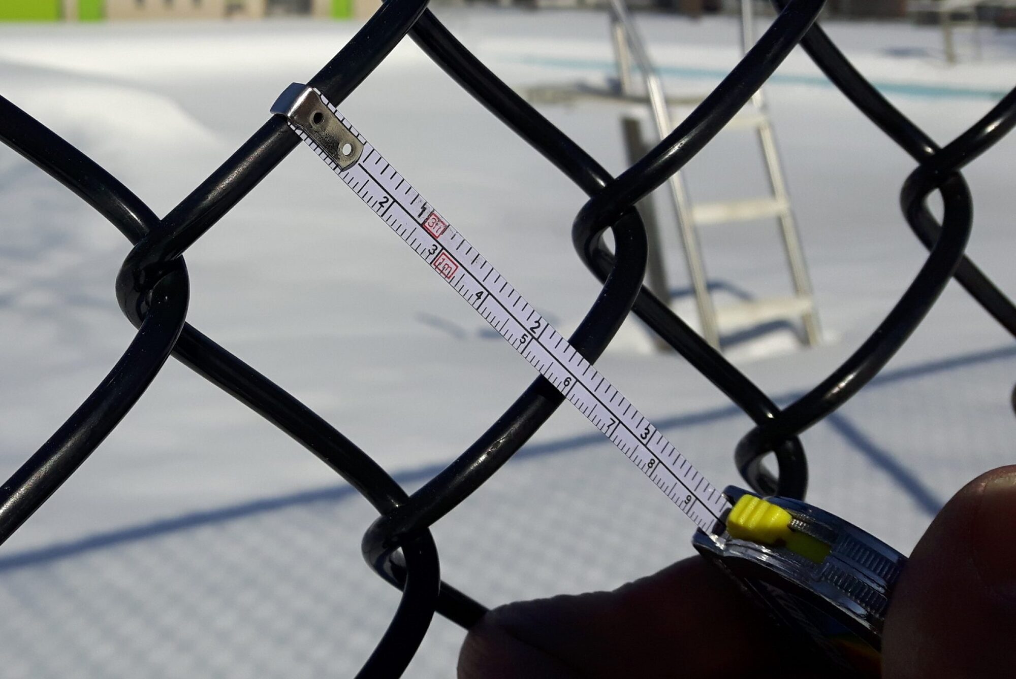 Journaldesvoisins.com est allé vérifier sur le terrain de la piscine Gabriel-Lalemant. La distance entre les mailles de la clôture est actuellement de l’ordre de 50mm. (Photo: jdv P. Rachiele)