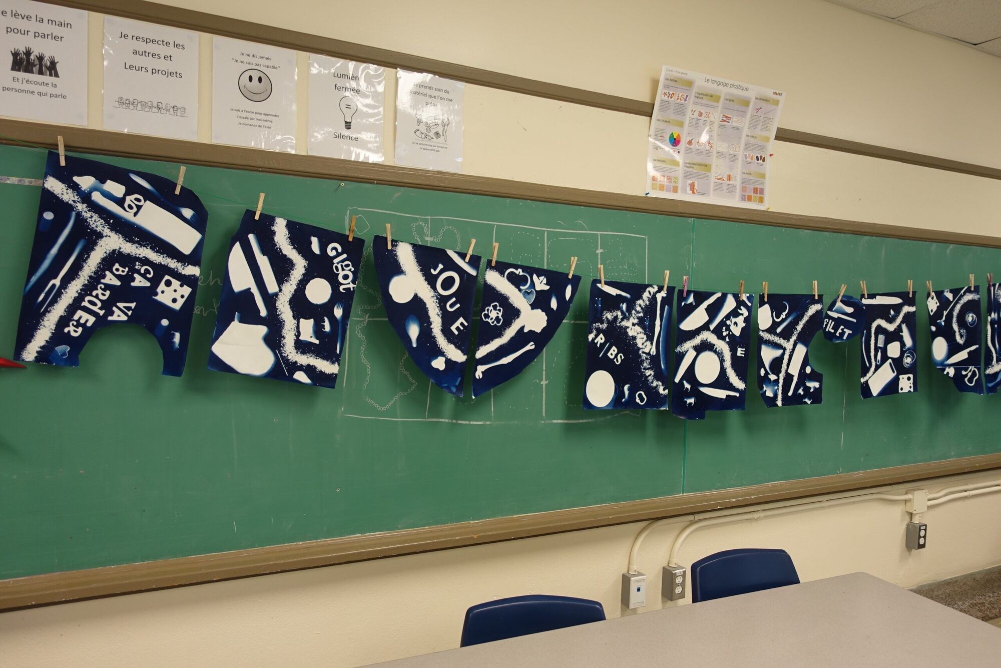 (Mise à jour, 2021-06-01) À noter que les cyanotypes des élèves seront exposées devant les commerces qui ont participé au projet, tandis que d’autres types d’œuvres seront exposées à l’école.