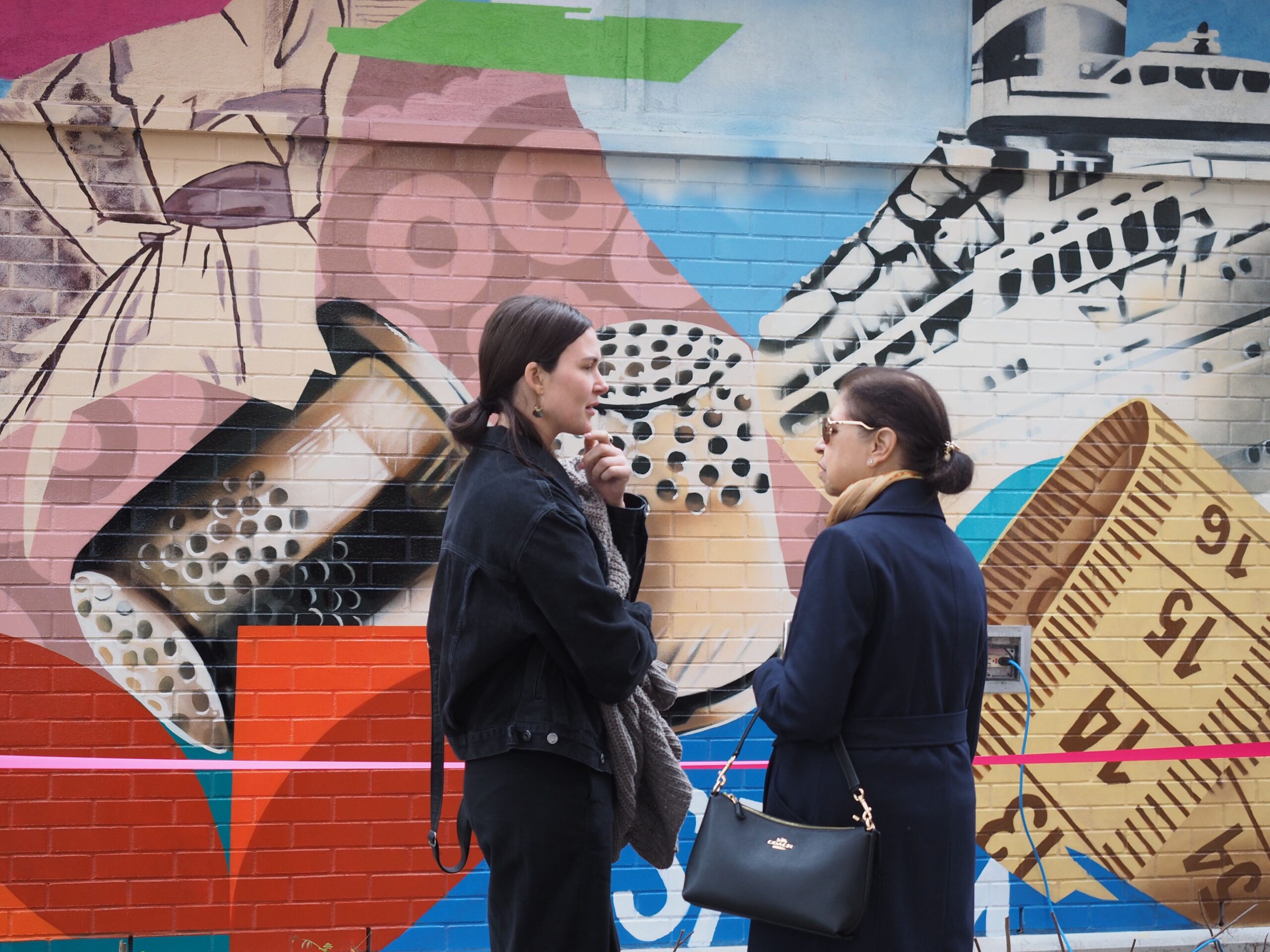 «Lorsque je suis arrivée et que j’ai vu la murale, je n’ai pas pu m’empêcher de pleurer», témoigne Antonietta, femme d’acier présente à l’inauguration de la murale le 18 octobre. Antonietta a immigré au Canada depuis l’Italie dans les années 1960. Elle a travaillé plus de 40 ans dans les usines textiles de Montréal.