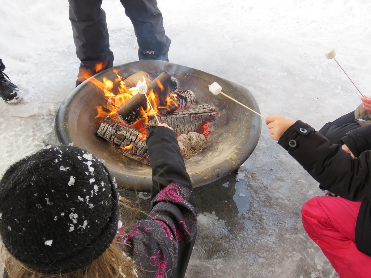 Guimauves et chaleur lors d’une Fête d’hiver d’Ahuntsic-Cartierville au Pavillon d’accueil du Pacours Gouin (Photo : Philippe Rachiele, JDV)