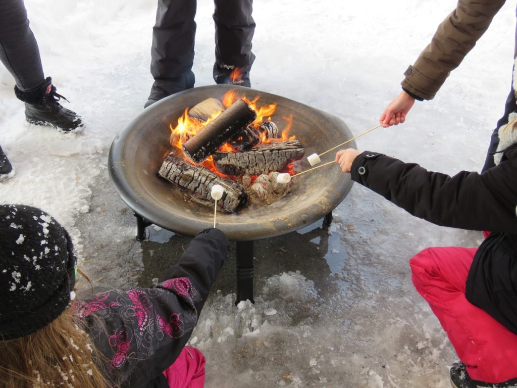 Guimauves et chaleur lors de la Fête d’hiver d’Ahuntsic-Cartierville au Pavillon d’accueil du Pacours Gouin (Photo : jdv – Philippe Rachiele)