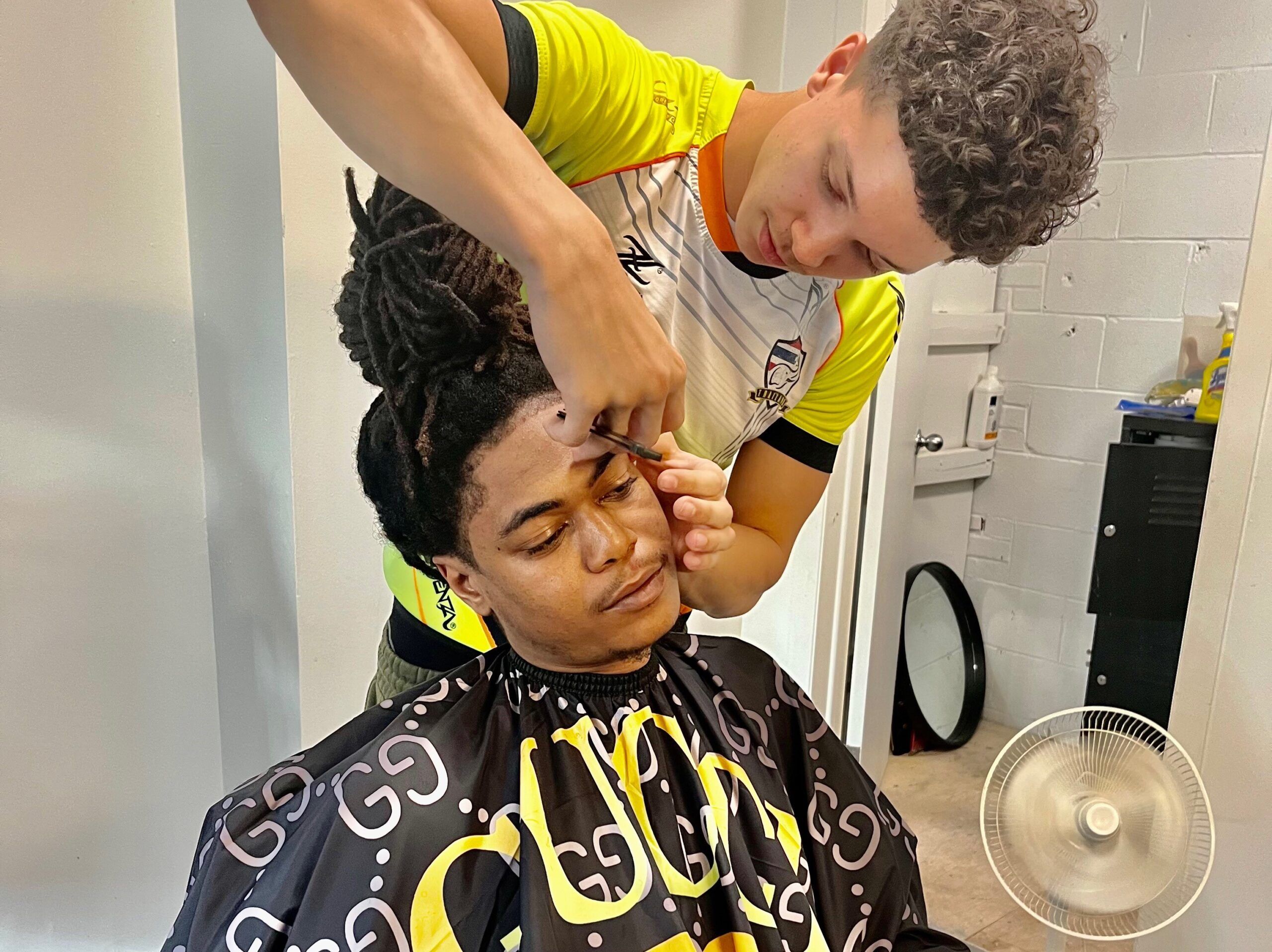 Deux résidents des HLM Saint-Sulpice tiennent désormais le salon de barbier pour y offrir des coupes à prix réduit. Ryad et Victor ont commencé dans leur chambre, où ils coupaient la barbe ou les cheveux de leurs copains. Ils offrent désormais leurs services et leur oreille à leurs congénères, mais aussi à la communauté.