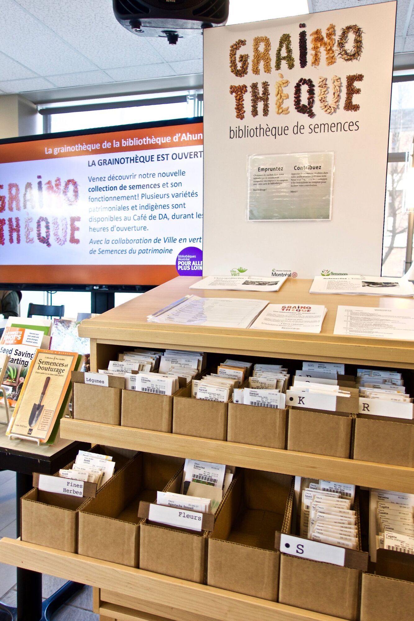 1. Utiliser des semences patrimoniales achetées en ligne de semenciers québécois, ce qui permet de récolter les semences en fin de saison pour les semis de l’année suivante (au contraire des semences hybrides). Il est facile de le faire avec les tomates et les haricots pour commencer. On peut aussi en acheter à l’occasion de fêtes des semences, dans certains magasins, s’en procurer au Centre culturel et communautaire de Cartierville (4C), à la bibliothèque d’Ahuntsic (jardinothèque) et même à l’Espace des Possibles Ahuntsic, rue Lajeunesse.