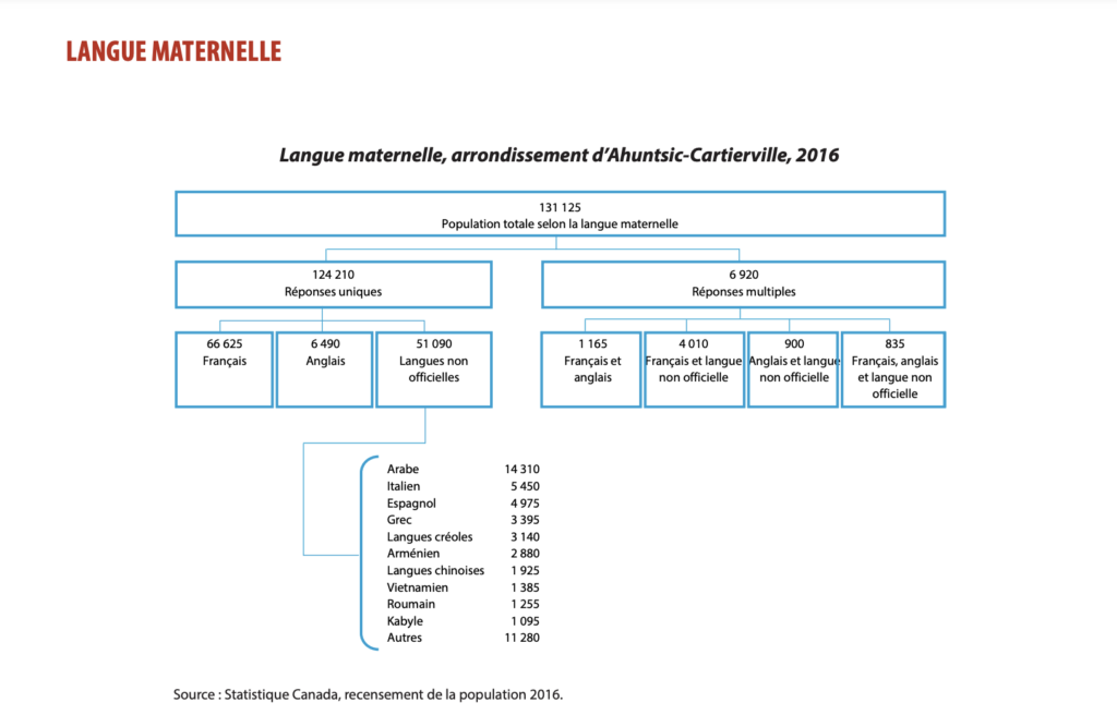 Source: Profil sociodémographique, Arrondissement d’Ahuntsic-Cartierville, recensement 2016, Statistique Canada