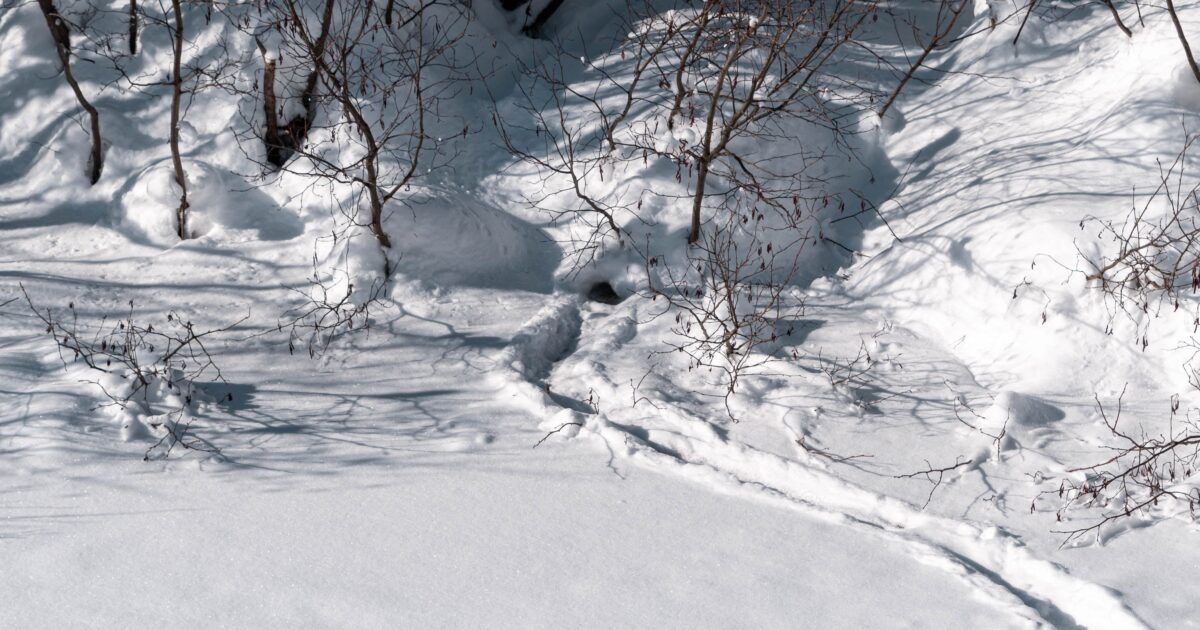 Traces de loutre de rivière dans la neige, menant à une tanière dans la berge. Photo : Shutterstock.
