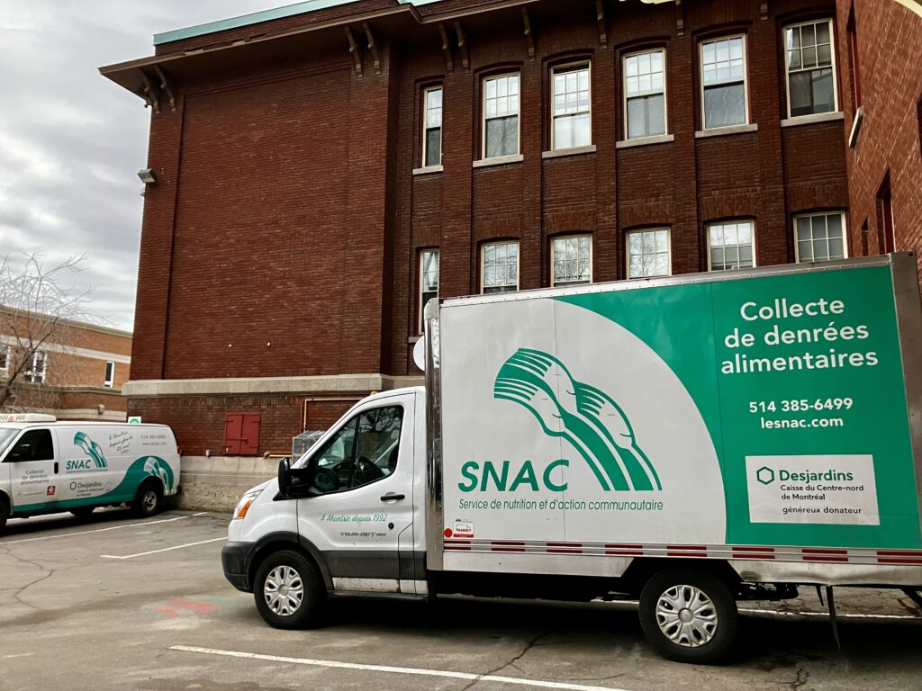 Administré par Solidarité Ahuntsic, le Centre communautaire Ahuntsic accueille des organismes communautaires qui dispensent des services à la population. On peut y aller déposer des vêtements et autres accessoires de maison même quand c’est fermé. Le Service de nutrition et d’action communautaire (SNAC) y loge, ainsi que ses camions de collecte de denrées alimentaires. (Photo: Anne Marie Parent, JDV)