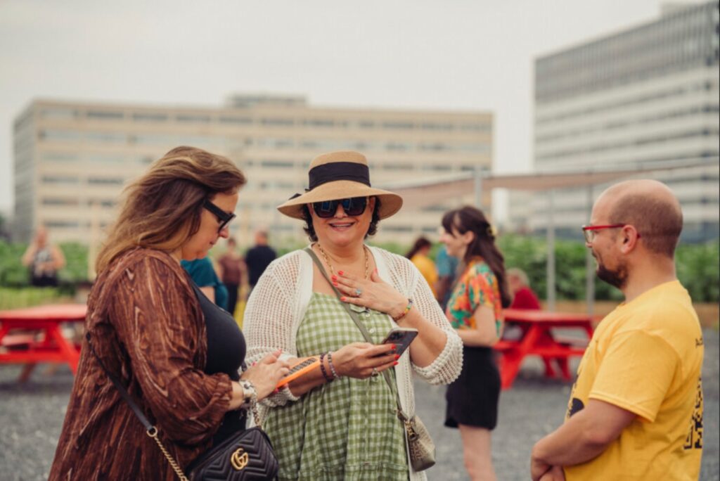 Delia De Gasperis, présidente du CA de la SDC District Central à l’événement Adopte ton tournesol à la Prairie Louvain le 18 juillet 2023. (Photo: Charles-Olivier Bourque, courtoisie SDC District Central)