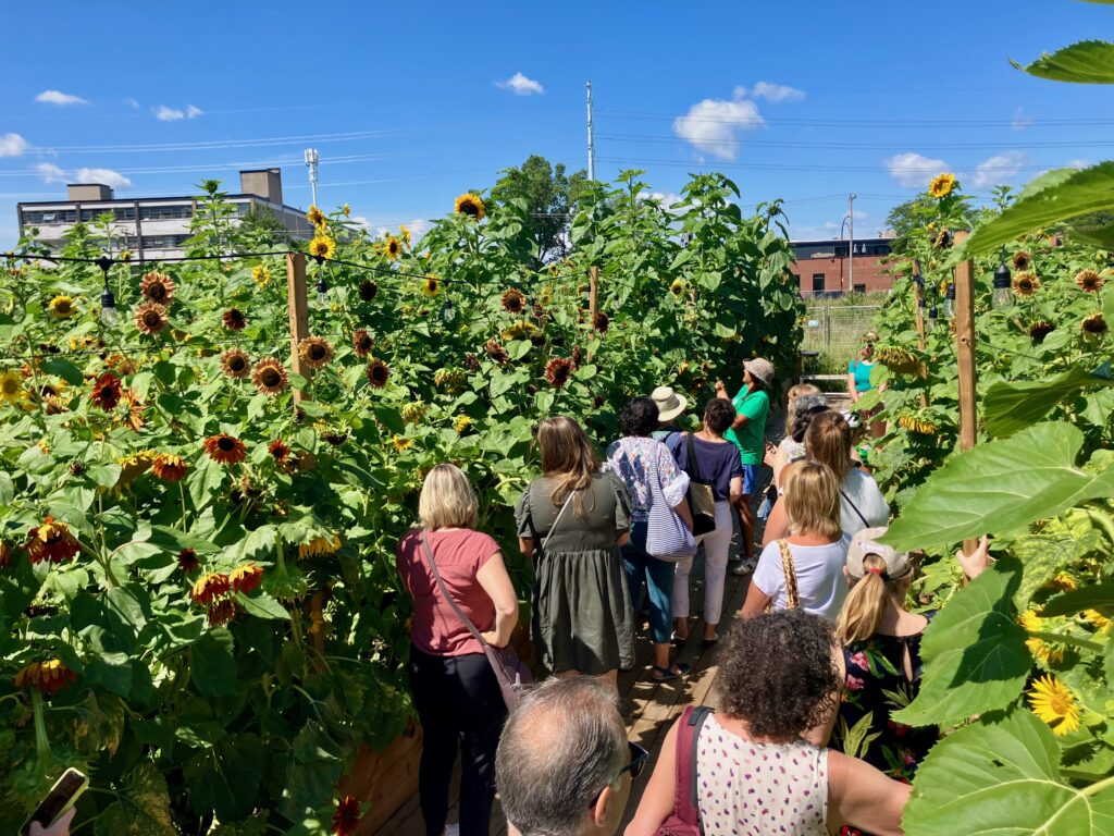 Aménagé sur une superficie de près de 18 000 pieds carrés, le plus grand champ de tournesols de l’île de Montréal est le premier projet signature de la Société de développement commercial (SDC) District Central, en partenariat avec Tourisme Montréal, la Ville de Montréal et YUL.