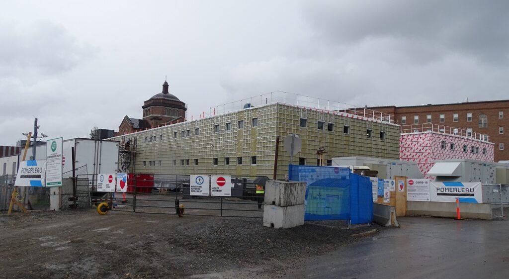 Unités modulaires en construction sur un terrain de stationnement de l’Hôpital du Sacré-Coeur. (Photo: jdv P. Rachiele)