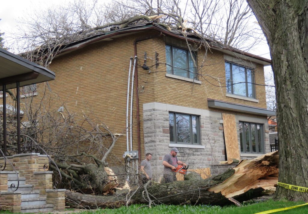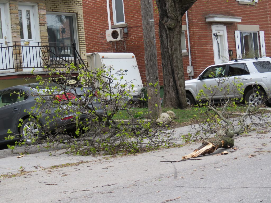 Des bris de branches, d’arbres, ont également causé des dommages, certains plus sérieux que d’autres, un peu partout à Montréal et au Québec, dont dans Ahuntsic-Cartierville.