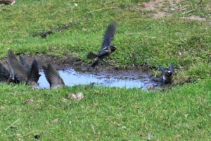 Étant donné que c’est un oiseau grégaire, il n’est pas rare de les voir cueillir de la boue ensemble et de chasser en groupe.