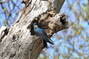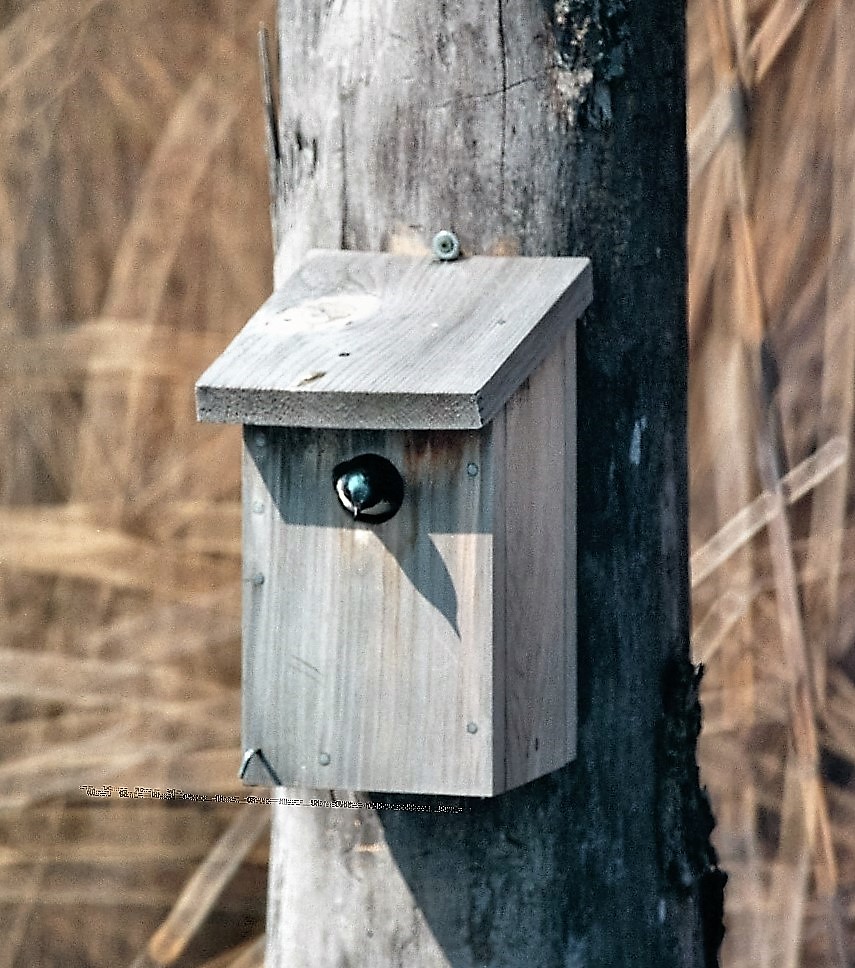 Cette hirondelle préfère nicher près de l’eau dans la cavité d’un arbre mort 1 , mais s’accommode très bien d’un nichoir s’il est placé dans un environnement favorable.