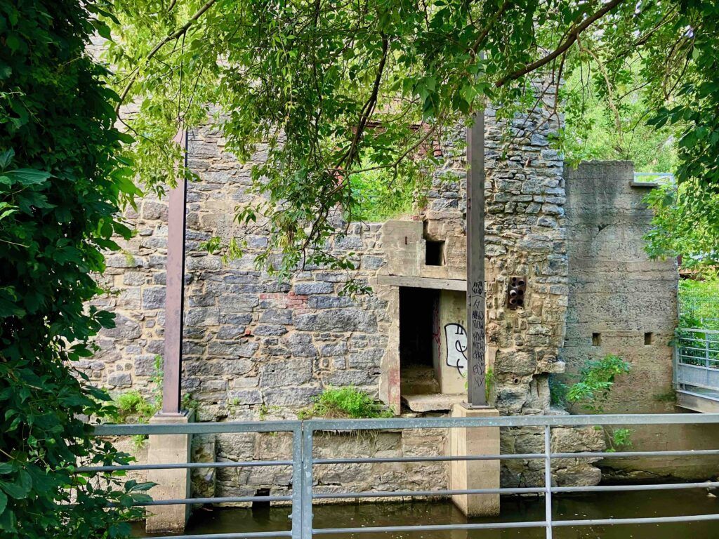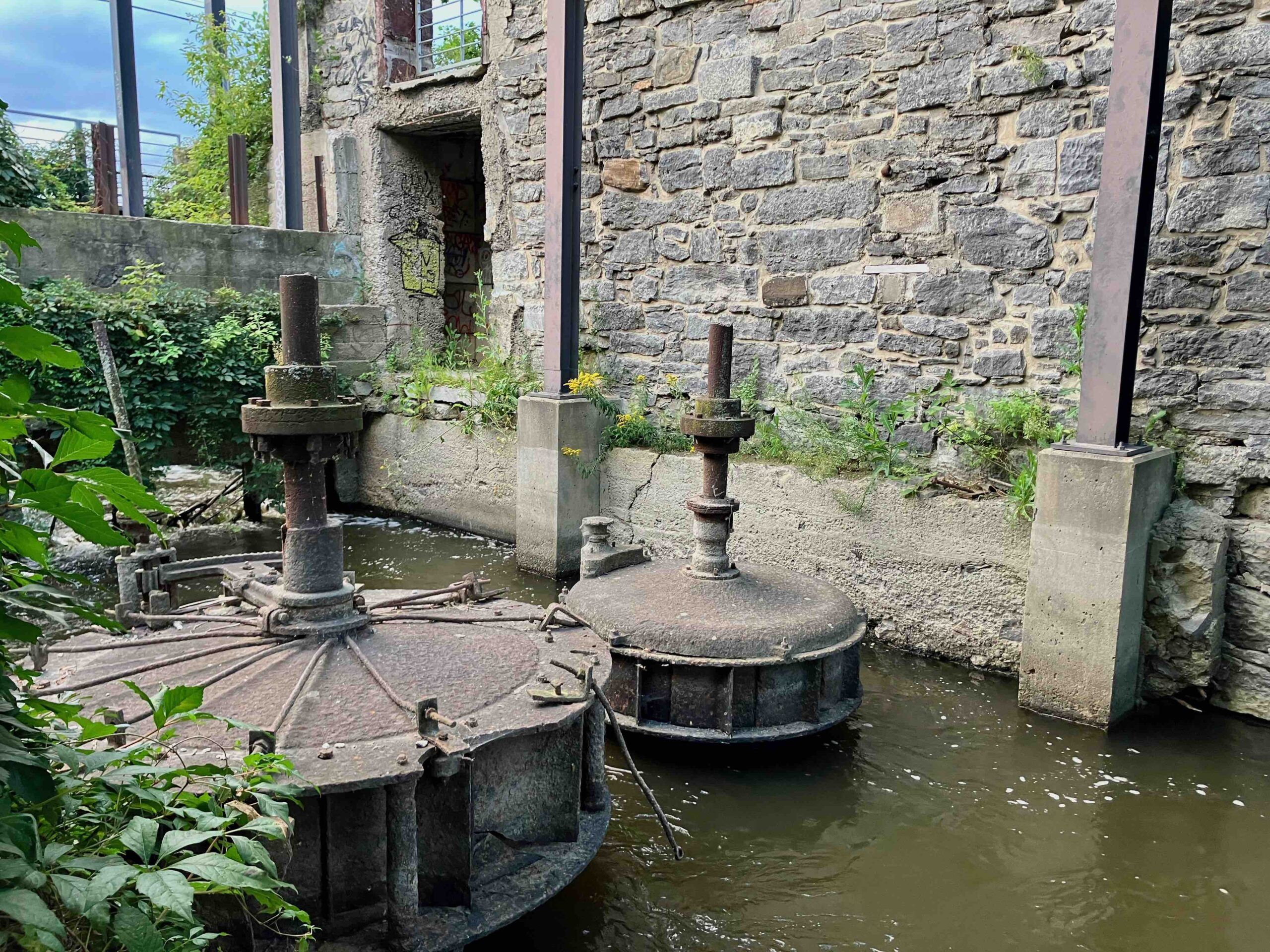 Anciennes cartes et photos, couverture de livres – la traduction du voyage de Pehr Kalm par exemple – permettent de comprendre l’importance patrimoniale du site des moulins et des sites avoisinants.