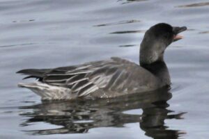 Ce qui complique les choses, c’est qu’il y a une variante dite bleue. Chez celle-ci, la tête est blanche, le corps est d’un gris-bleu foncé, le ventre blanc et les plumes des ailes sont noires lisérées de blanc.