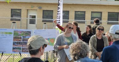Édith Poudrier, chargée de projet et responsable des animations pour l’outil-O-thèque, à l’Escale verte sur le boulevard Gouin Ouest. (Photo : François Robert-Durand, JDV)