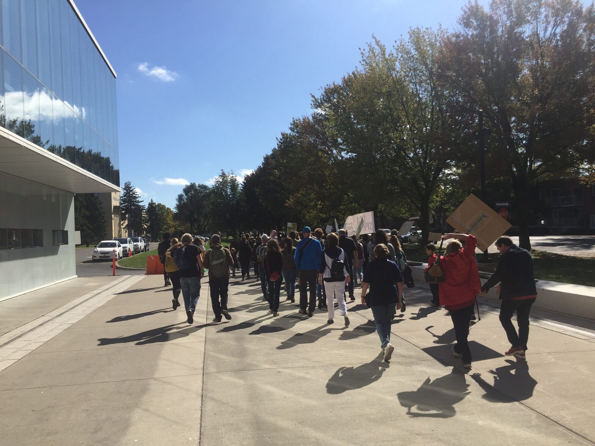 Il y a tout de même finalement un petit groupe qui quitte le Collège Ahuntsic en direction du métro Crémazie pour rejoindre les milliers d’autres manifestants motivés.