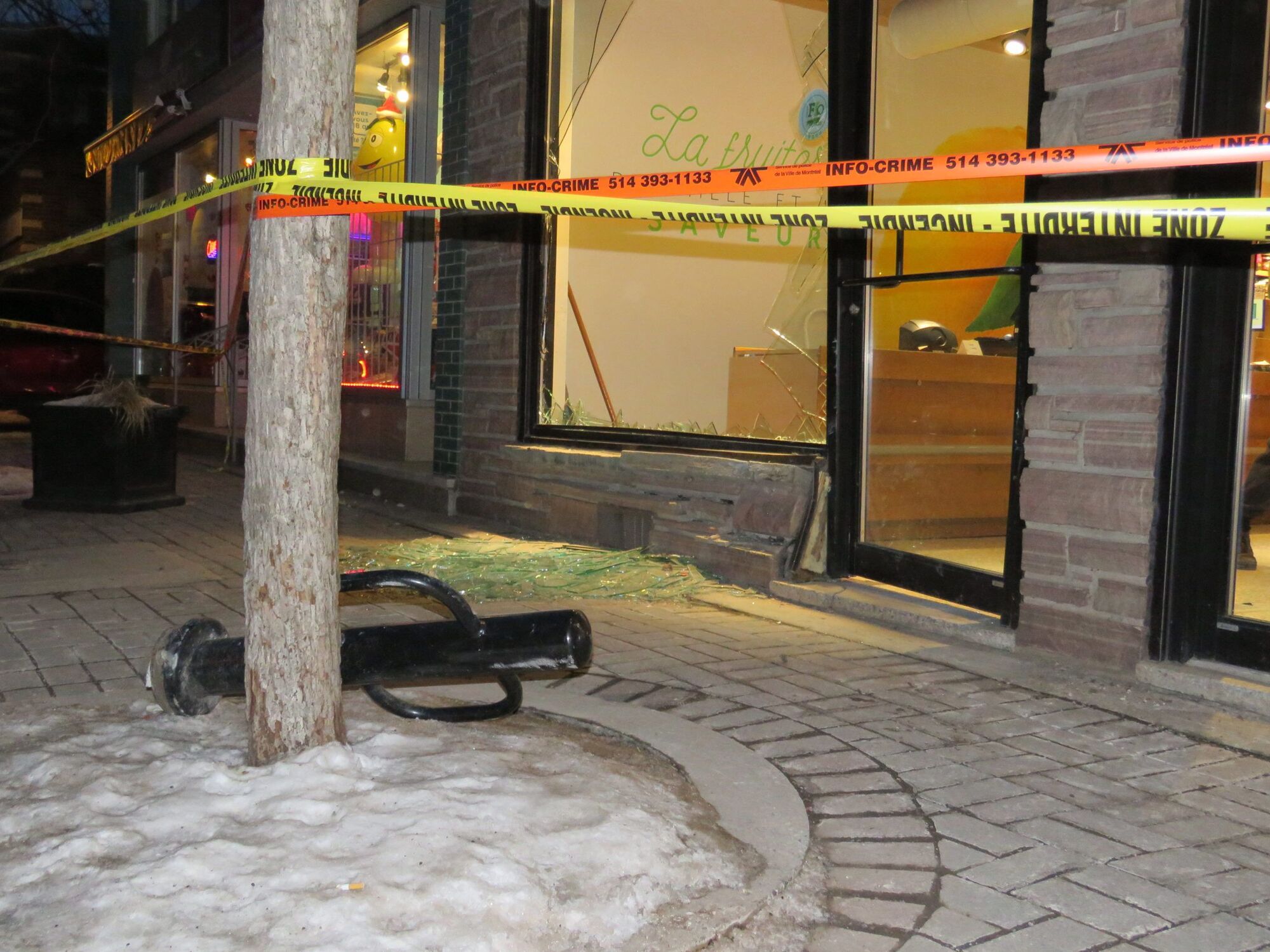 En janvier dernier, un automobiliste avait démoli la vitrine avant du commerce Citron que c’est bon (maintenant appelé Fraîchement bon!). Ce faisant, le mobilier urbain, ci-devant le support à vélos placé devant le magasin par l’arrondissement qui en avait défrayé le coût d’origine, avait été arraché.
