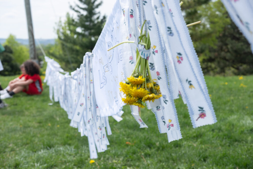 Les membres du Cercle ont participé en fournissant et en coupant le tissu pour faire les rubans qui ont servi à marquer les montées et les drapeaux. Une belle collaboration.