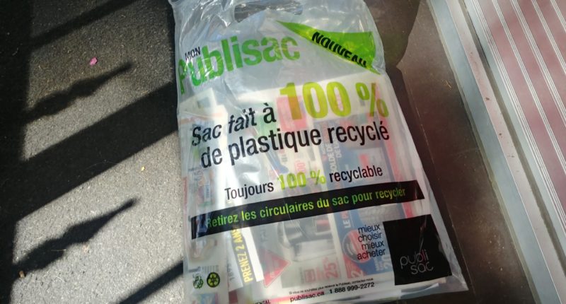 Sur le territoire montréalais, plus de 900 000 Publisacs sont distribués à chaque semaine par la compagnie TC Transcontinental. Chacun d’entre eux est livré dans un sac en plastique. Pour que la circulaire et son sac soient recyclés, le contenu doit être jeté séparément du contenant. D’après des statistiques recueillies par Recyc-Québec de 2012 à 2016, 85,6% du papier des circulaires est réutilisé.