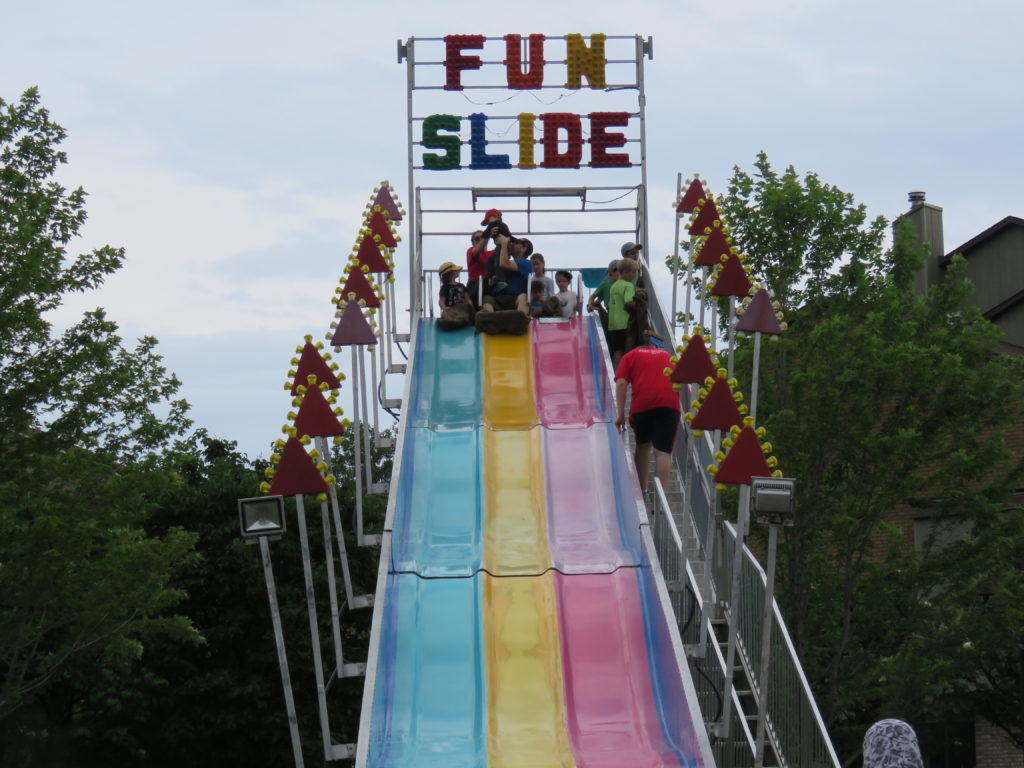 La grosse bonne femme qui rit, un carrousel, une grande glissoire, des miroirs déformants, des anciennes photos et artéfacts, un vieux camion de pompier, un ancien autobus de la STM, un ancienne auto de police, et de nombreux stands de plusieurs organismes locaux étaient également sur place pour l’occasion.