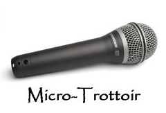 En passant, savez-vous ce que signifie l’expression «micro-trottoir» (que nous utilisons au lieu de l’expression anglaise vox-pop)? Je vous le donne en mille! Non, ça ne veut pas dire un petit trottoir! Mais bien, pour un journaliste, prendre un micro et aller se promener sur le trottoir pour y rencontrer des gens qui y circulent et solliciter leur témoignage sur un sujet d’intérêt public.