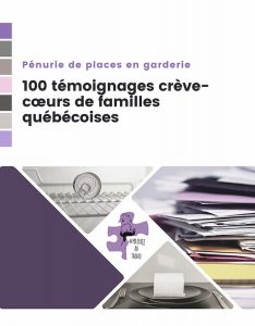 Après de longues recherches, des « tuyaux » de mères du quartier, des coups de téléphone et des visites, Clémence et Jules vont pouvoir être accueillis dans une nouvelle garderie en milieu familial. Leurs parents ont été obligés de prendre des congés pour les garder et ont bénéficié de l’aide de leurs mères en attendant de trouver une solution. Pour la mère de famille, trouver une place dans un CPE est rendu « impossible ».