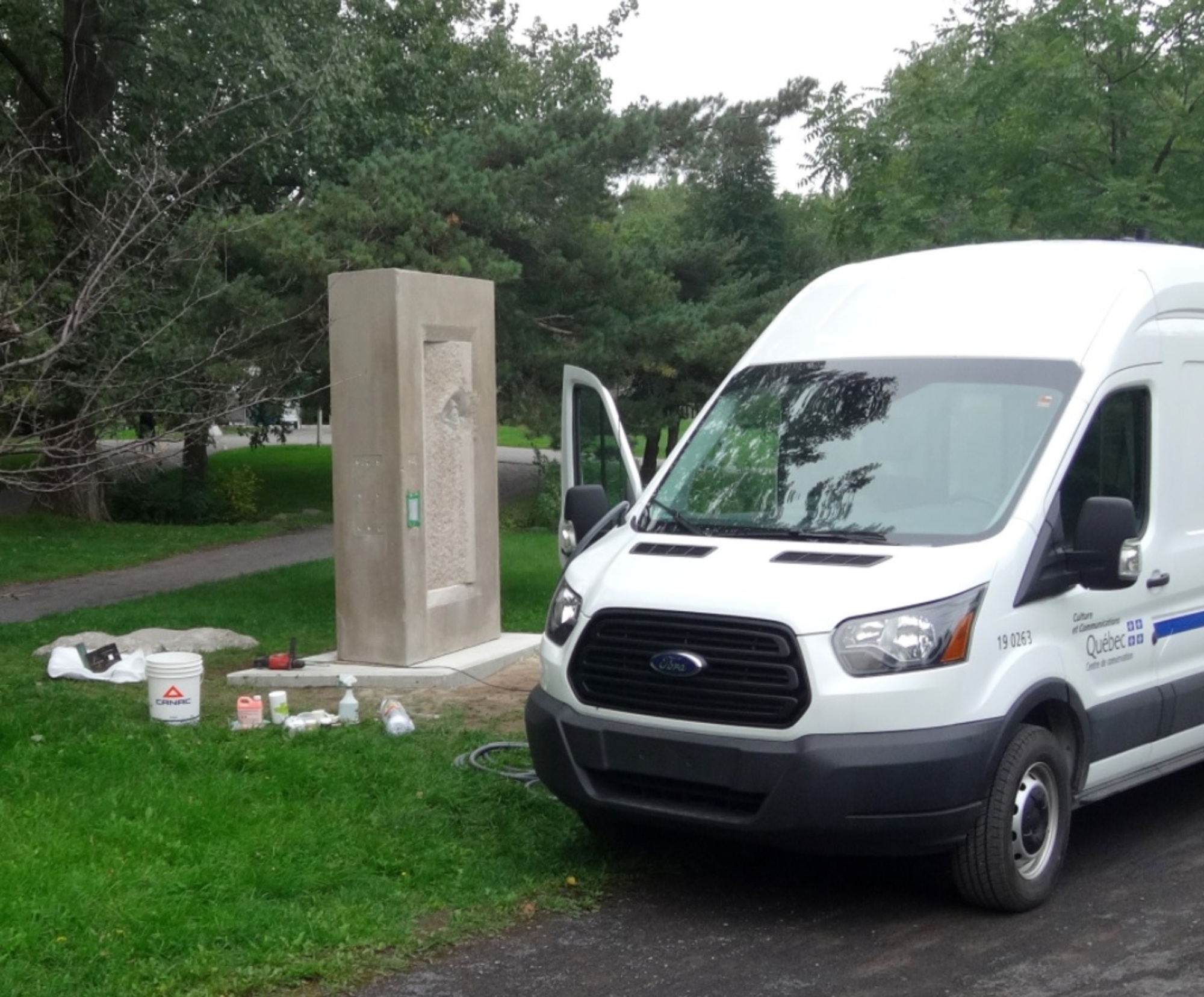 Selon une citoyenne, ce sont des spécialistes du Centre de conservation du Québec qui procédaient hier à des travaux de nettoyage de l’œuvre, ce qu’ont pu constater des résidants des environs.
