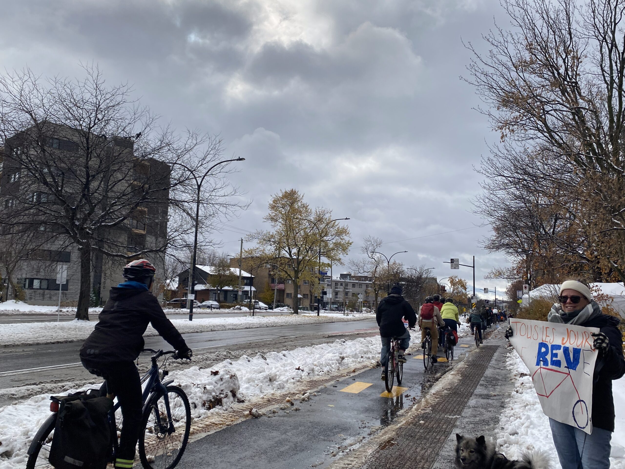 Prêts à braver cette journée froide, des cyclistes montréalais se sont rassemblés pour rendre hommage à une chose qui leur tient tous à cœur : le REV Henri-Bourassa.