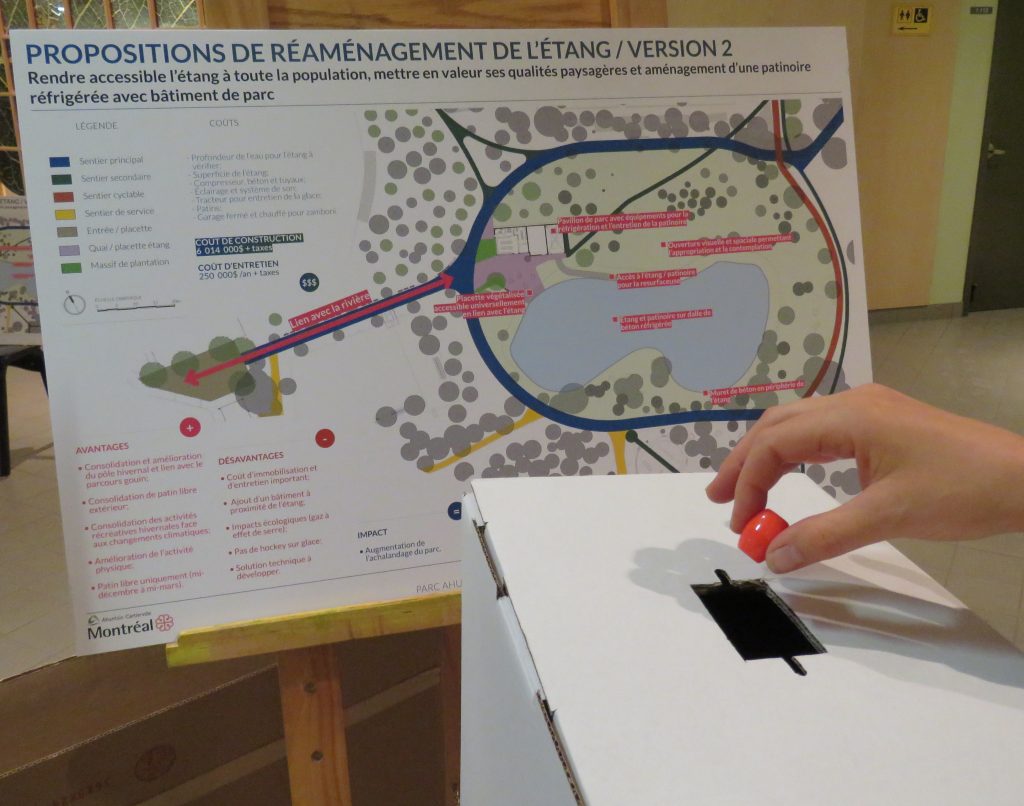 Une centaine de résidants s’étaient déplacés mardi soir pour participer à la deuxième consultation sur l’avenir du parc Ahuntsic. Une soirée animée durant laquelle les citoyens ont pu commenter les propositions de l’arrondissement et surtout, exprimer leur vote sur l’avenir de l’étang.