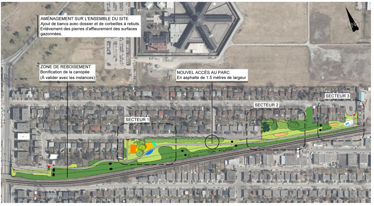 Plan préliminaire de réaménagement du parc Zotique-Racicot tiré du document de rétroaction sur la consultation publique de l’automne 2021. (source : arrondissement d’Ahuntsic-Cartierville)