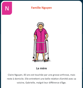 Chaque famille a un rapport avec la personne aidée et âgée – et chaque personne a une histoire qui est racontée sur les cartes du jeu.