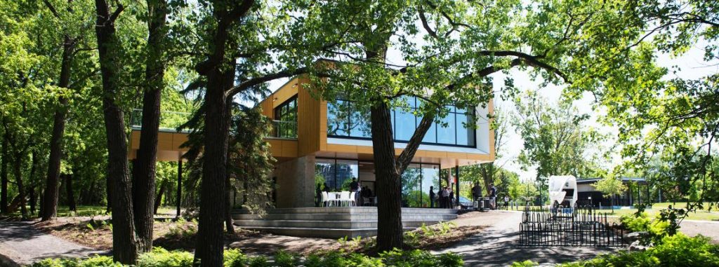 Le pavillon d’accueil du Parcours Gouin est le premier bâtiment à consommation énergétique nette zéro à Montréal. Il est conçu pour produire autant d’énergie qu’il en consomme. Parmi les caractéristiques environnementales, on retrouve une gestion efficace de l’eau, des matériaux durables, ainsi qu’une enveloppe thermique et le recours à la géothermie qui permet une récupération de la chaleur.