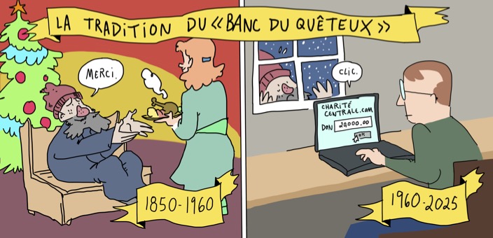 À quand remonte votre dernier don à une œuvre de charité ? Peut-être juste avant Noël, au moment de payer la dinde à la caisse de l’épicerie, où il était facile d’ajouter quelques dollars à la facture ? Le moment se prête à la bienveillance, et le plus austère des contribuables finit par céder une pièce ou un billet, comme on glisse une offrande dans la bouche d’un vieux totem pour s’attirer la clémence des dieux de la comptabilité.