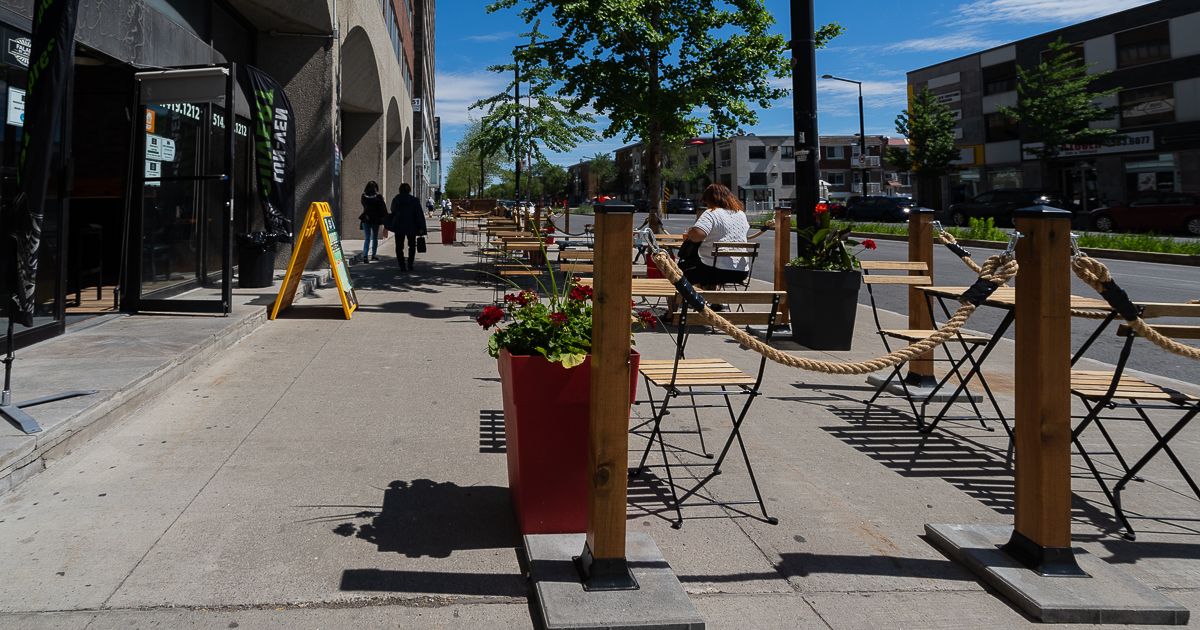 Tout comme l’ensemble du territoire québécois, les terrasses de la rue Chabanel rouvrent tranquillement. (Photo: François Robert-Durand)