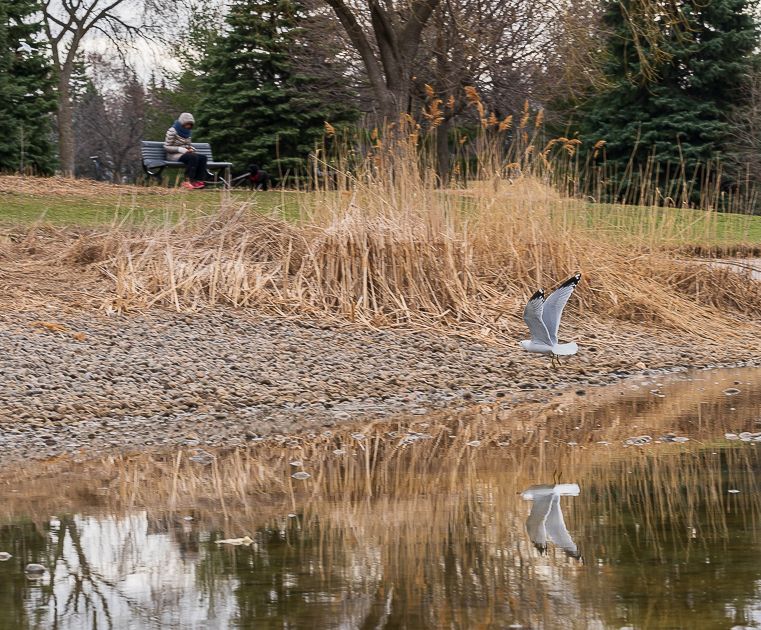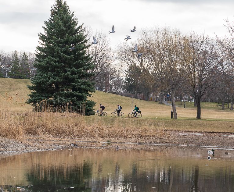 L’étang du Parc Ahuntsic, à défaut d’avoir une fontaine opérationnelle, est un havre de paix qui nous fait temporairement oublier le chaos urbain environnant.  Hormis les quelques lève-tôt qui le parcourent aux petites heures du matin, la faune y pullule.