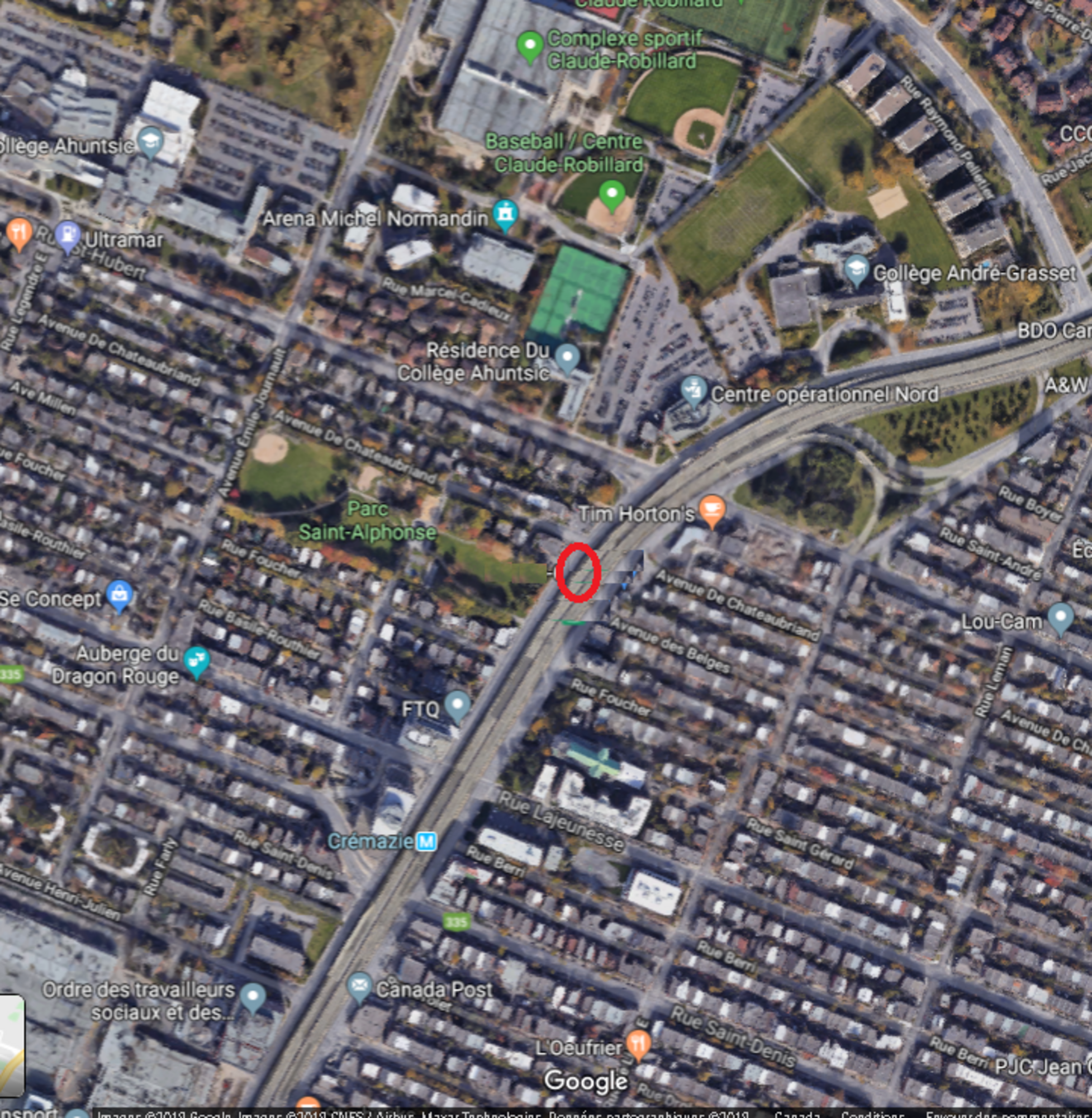 Un piéton de 59 ans a été happé par un VUS conduit par un homme de 51 ans  vendredi 1er novembre vers 19 h sur le boulevard Crémazie à proximité du parc St-Alphonse, un peu à l’ouest de la rue De Châteaubriand.