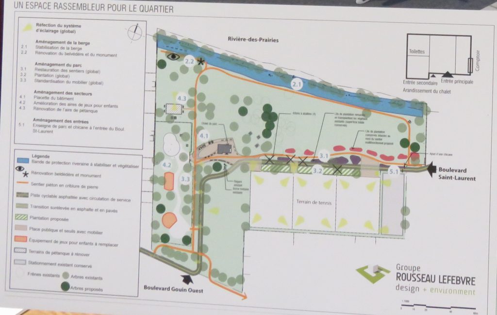 Il y aura donc des travaux de réfection du parc du boulevard Gouin et de la stabilisation des berges en bordure de la rivière qui longe le parc, dès l’été 2019. Les travaux seront, sans doute un peu plus modestes que ceux qui avaient été envisagés au départ (pas de fouilles archéologiques, aucun changement au stationnement, pas de réparation du mur-clôture, notamment).