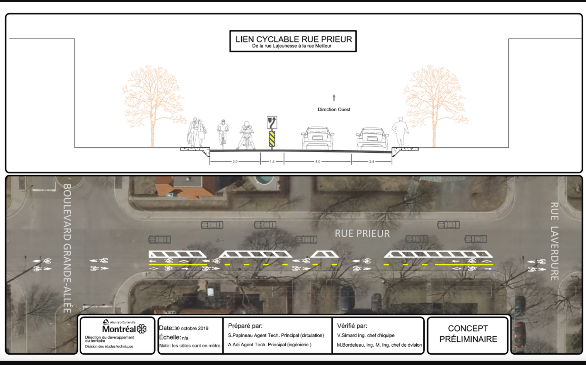 L’arrondissement prévoit également l’implantation de liens cyclables structurants sur les rues Prieur et Sauriol. À cette fin, à la réunion du conseil de décembre, une dépense a été autorisée pour la fourniture de services professionnels en vue d’élaborer un programme de travail de modification aux feux de circulation et une étude d’impact sur la circulation de ces mesures proposées.