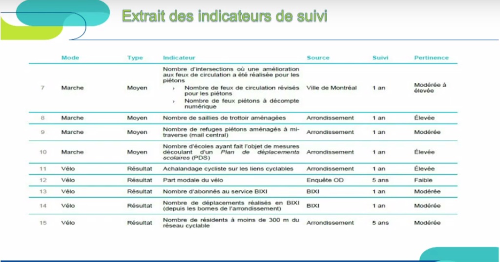 Le transport en commun constitue également un des objectifs. À ce chapitre, l’arrondissement fait des représentations auprès des autorités de la STM et Jérôme Normand précise qu’Ahuntsic-Cartierville a un canal privilégié avec la STM. En outre, précise-t-il, pour chaque mesure concernant le transport en commun, la STM a validé à chaque fois les propositions, c’est à dire qu’elle les a jugées recevables, tout en se gardant de les accepter d’emblée.